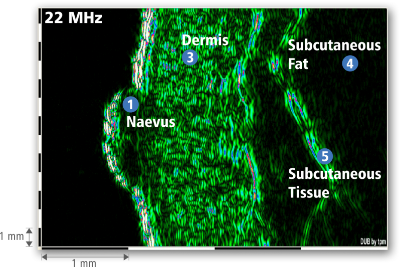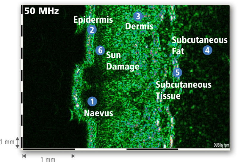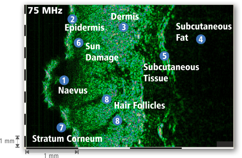 "Why do you offer so many different frequencies?" This recurring question has a simple answer: the higher the ultrasound frequency, the higher the resolution of the skin in depth but on the other hand the penetration depth decreases.
